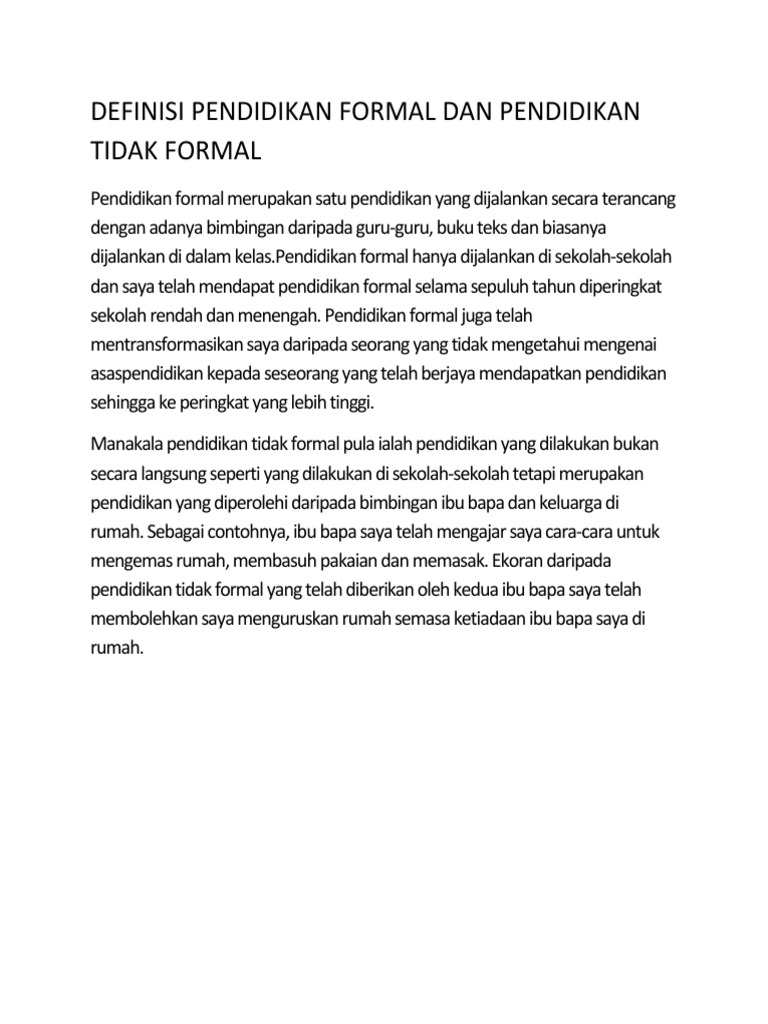 Related : Pendidikan Formal Sebelum Kedatangan British / Pendidikan dapat diperoleh melalui jalur formal, non formal dan informal..